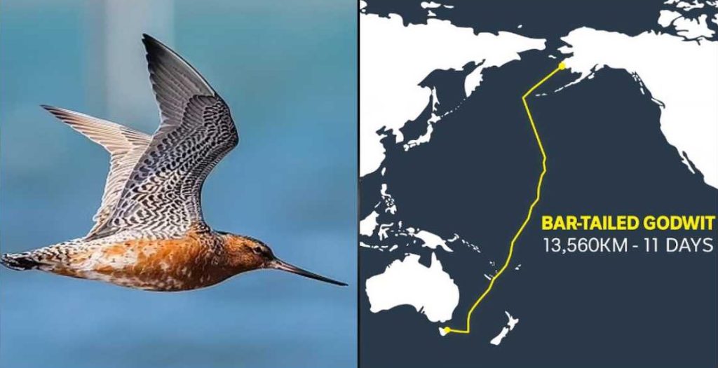 Burung Bar-tailed Godwit, sejenis burung pantai berukuran sedang, dikenal sebagai salah satu migran jarak jauh paling tangguh di dunia. Populasi tertentu dari spesies ini berkembang biak di wilayah Alaska, kemudian bermigrasi menuju kawasan musim dingin di New Zealand atau Australia.
